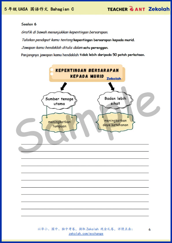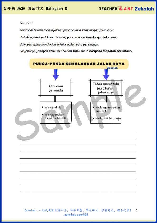 因此,我们根据集训内容,特别为 五年级(Aras 2) 学生准备了 Bahagian C 作文练习。