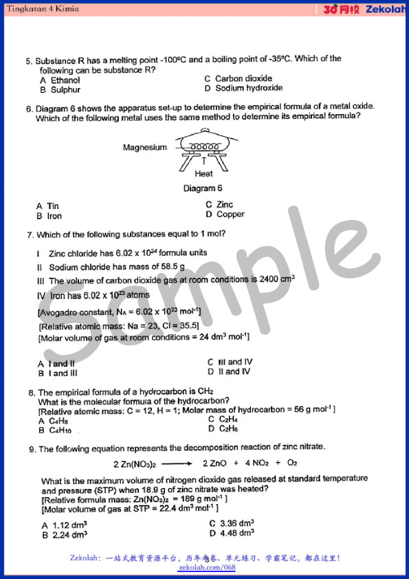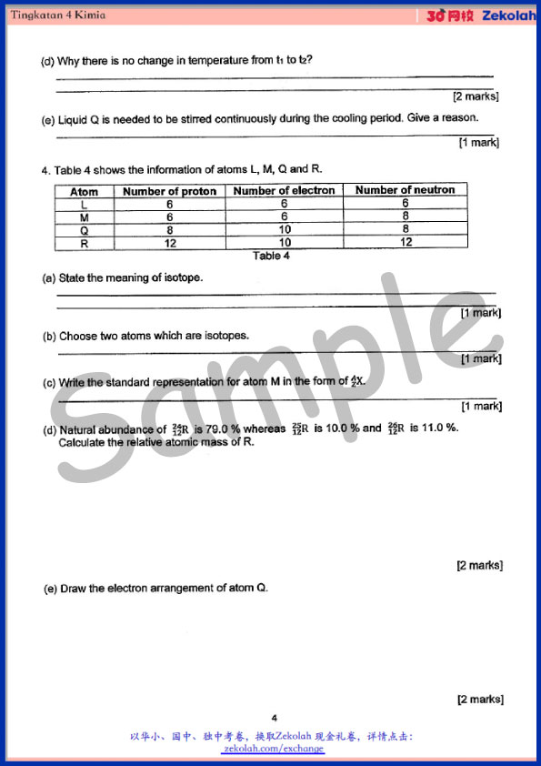 Kertas soalan peperiksaan Tingkatan 4: Kimia
