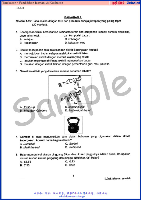 Tingkatan 4 Pendidikan Jasmani & Kesihatan (PJK) Ujian Peperiksaan Pertengahan Tahun – Form 4 PJK Mid Year Exam