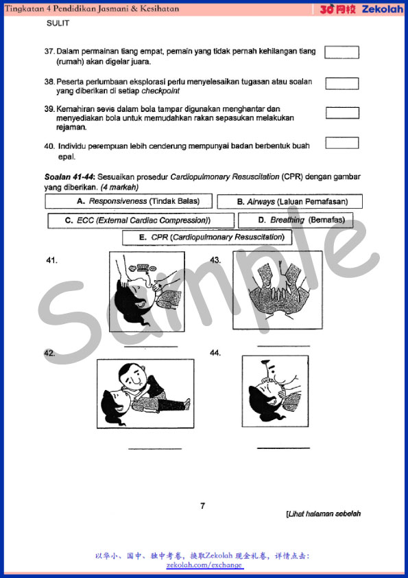 Kertas soalan peperiksaan Tingkatan 4: Pendidikan Jasmani & Kesihatan