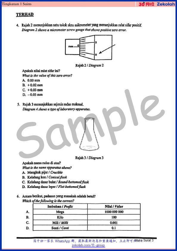 Kertas soalan peperiksaan Tingkatan 1: Sains (Ujian Pertengahan Sesi Akademik, UPSA)