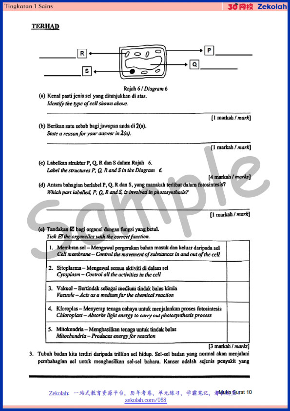 Tingkatan 1 Sains Ujian Peperiksaan Pertengahan Tahun UPSA – Form 1 Science Mid Year Exam DLP