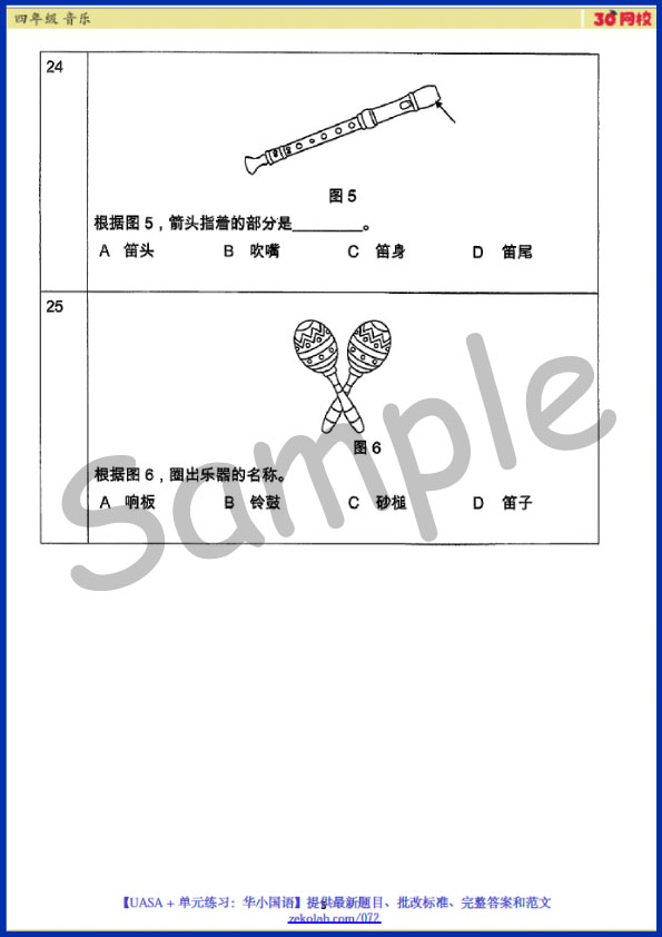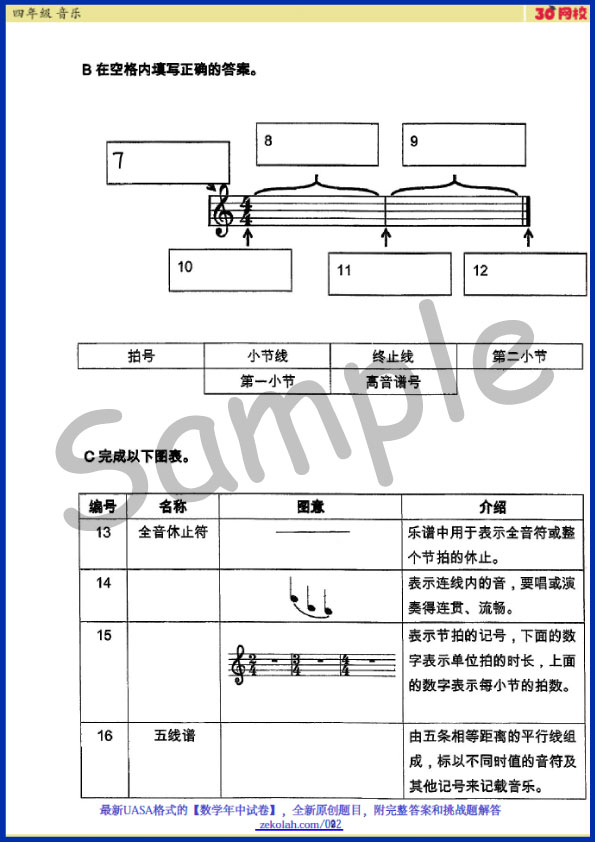 【历年考卷】四年级 音乐【SJK(C) Past Year Papers】 Standard 4 Music