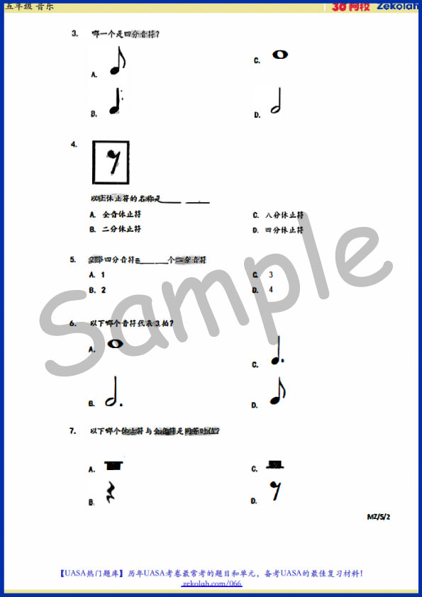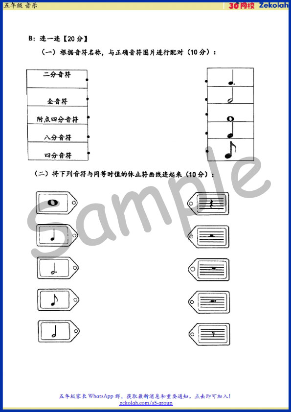 【Kertas Soalan Peperiksaan SJKC】Tahun 5 Muzik