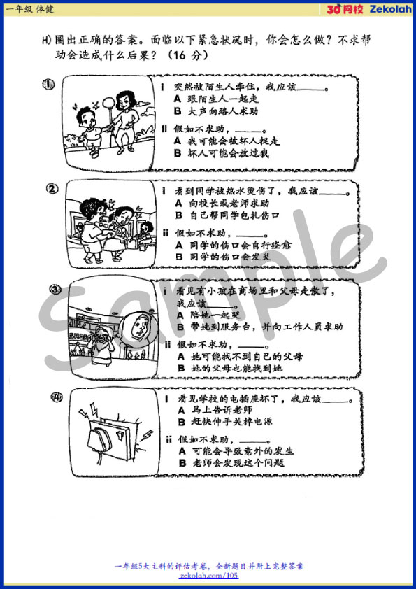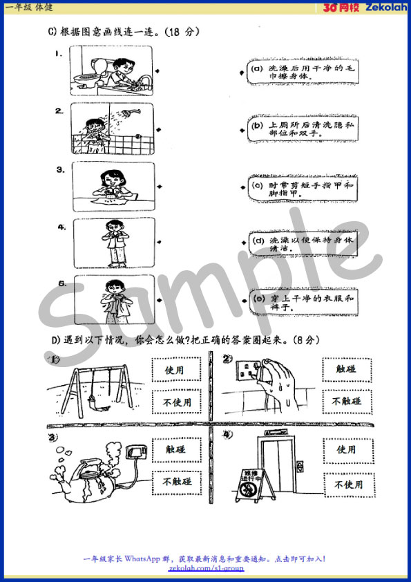 【历年考卷】一年级 体育与健康教育【SJK(C) Past Year Papers】 Standard 1 PJK