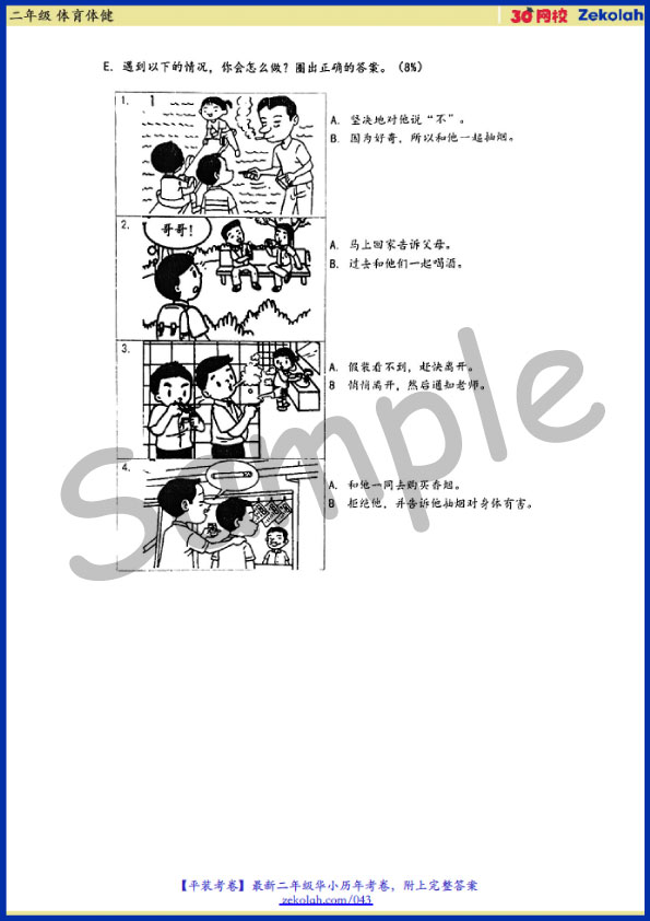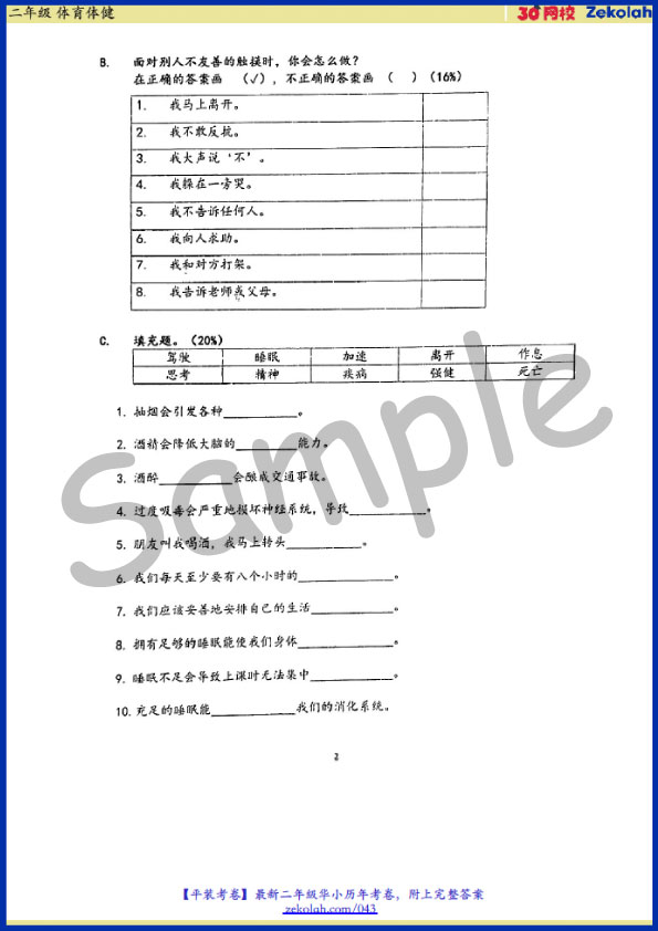 【历年考卷】二年级 体育与健康教育【SJK(C) Past Year Papers】 Standard 2 PJK