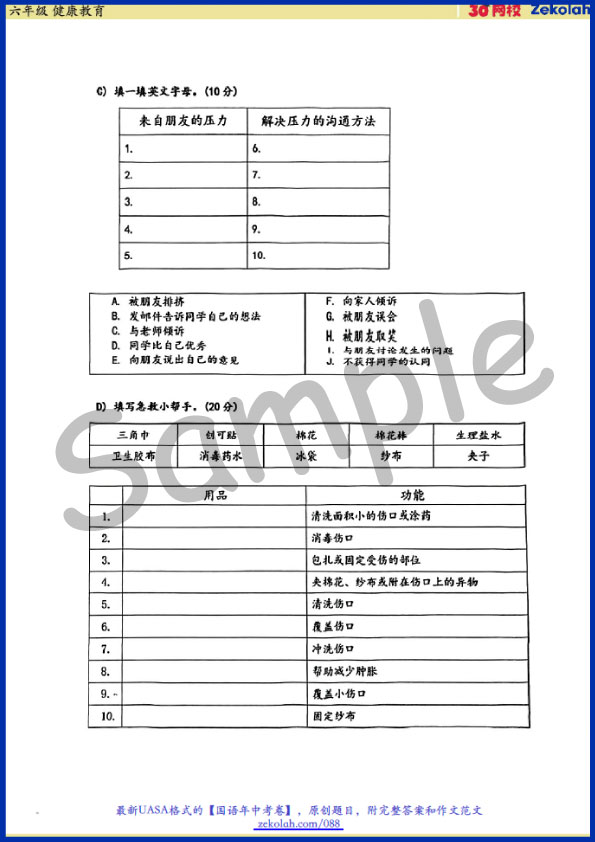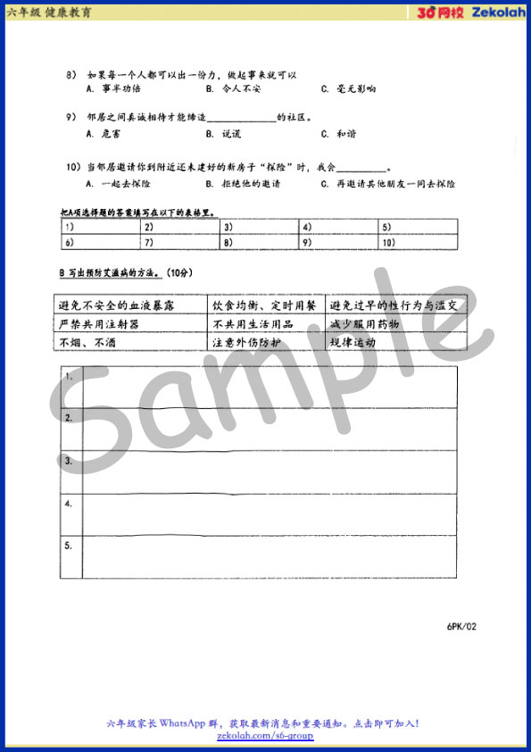 【历年考卷】六年级 体育与健康教育【SJK(C) Past Year Papers】 Standard 6 PJK