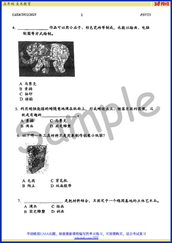 【历年考卷】五年级 美术教育【SJK(C) Past Year Papers】 Standard 5 PS