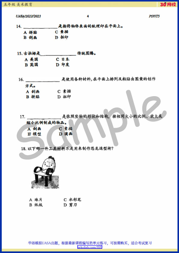【Kertas Soalan Peperiksaan SJKC】Darjah 5 Pendidikan Seni