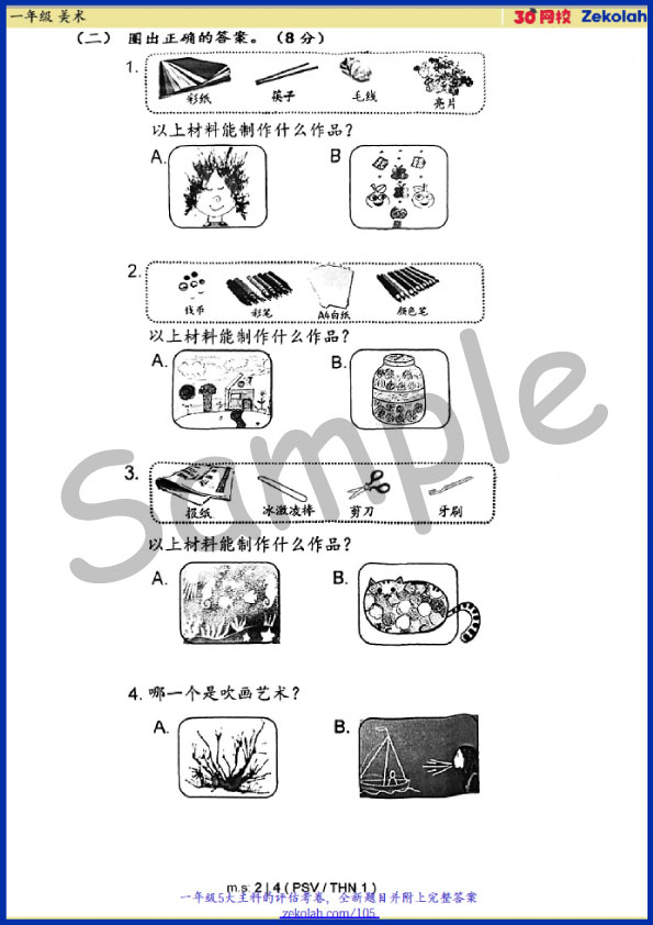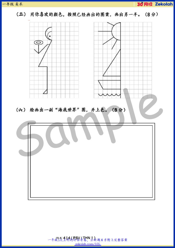 【历年考卷】一年级 美术【SJK(C) Past Year Papers】 Standard 1 PSV