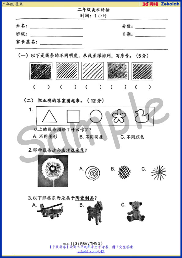 【历年考卷】二年级 美术【SJK(C) Past Year Papers】 Standard 2 PSV