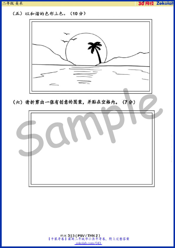 【Kertas Soalan Peperiksaan SJKC】Tahun 2 Pendidikan Seni Visual PSV