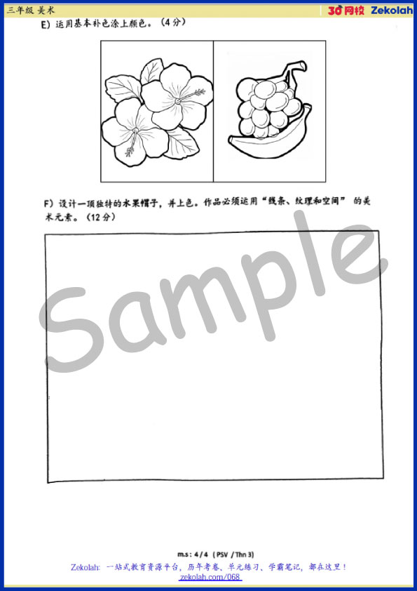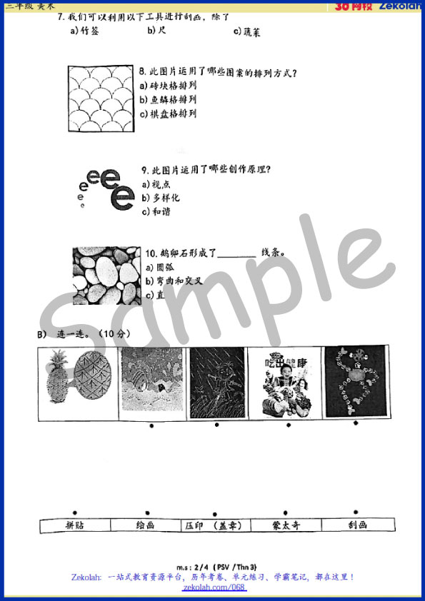 【历年考卷】三年级 美术【SJK(C) Past Year Papers】 Standard 3 PSV