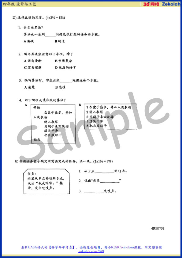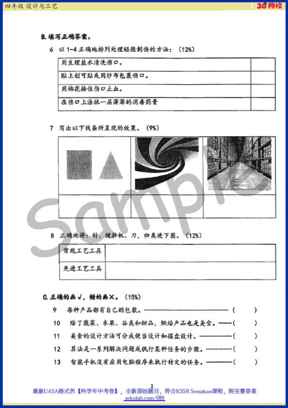 【历年考卷】四年级 设计与工艺【SJK(C) Past Year Papers】 Standard 4 RBT