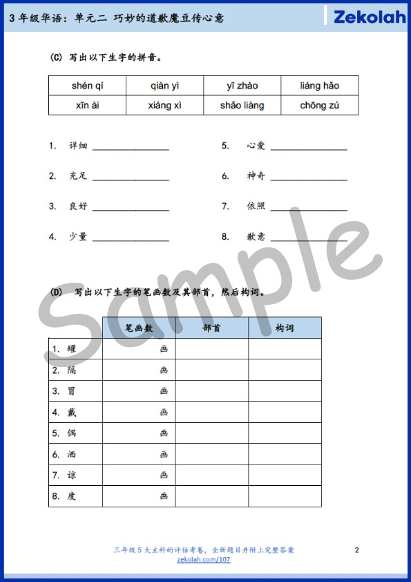 Latihan Unit: SJK(C) Bahasa Cina Tahun 3