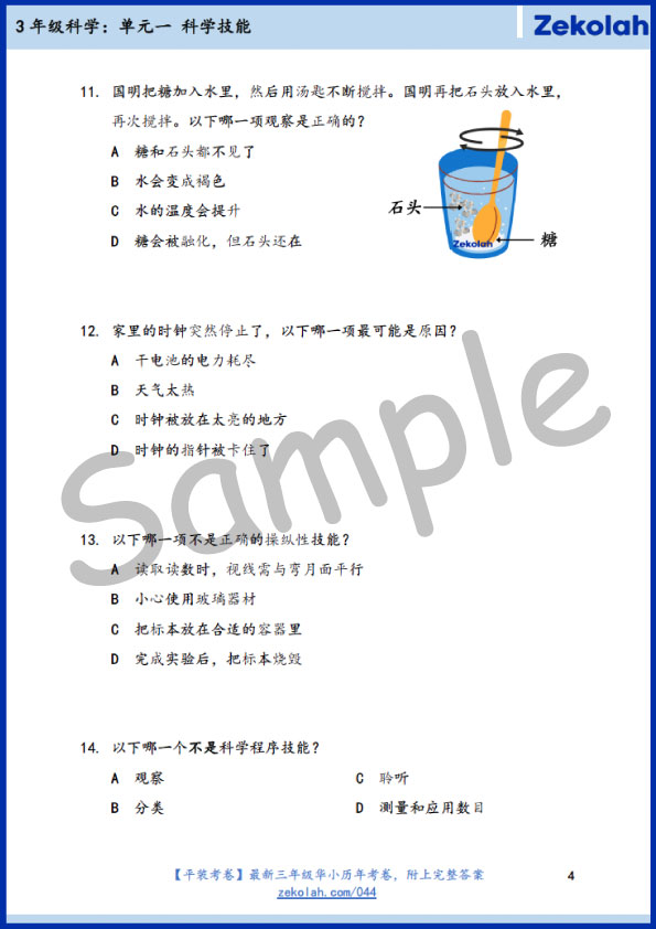 Unit | 三年级科学 第1课, 三年级科学 第2课, 三年级科学 第3课, 三年级科学 第4课 |
