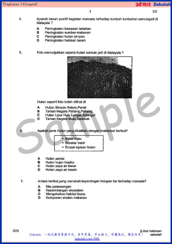 Tingkatan 3 Geografi Peperiksaan Akhir Tahun – Form 3 Geography Year End Exam