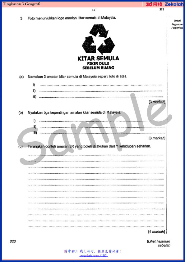 - Actual exam papers from SMK (Sekolah Menengah Kebangsaan)