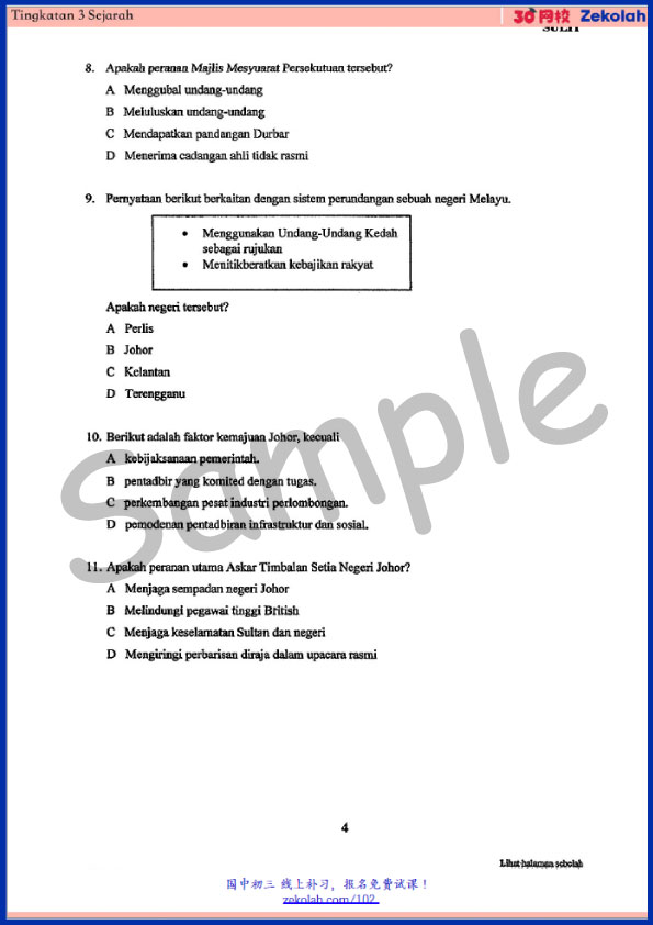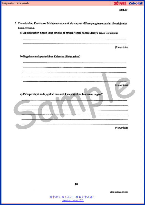 Tingkatan 3 Sejarah Peperiksaan Akhir Tahun – Form 3 History Year End Exam