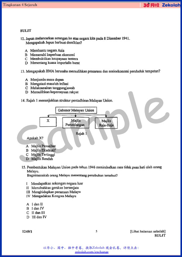 • Actual exam papers from SMK (Sekolah Menengah Kebangsaan)